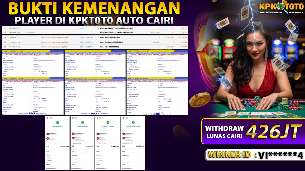 Bandar togel KPKTOTO merupakan bandar togel dan slot online yang membayar semua kemenangan member hingga lunas. Setiap pembayaran pada situs kami dilakukan dengan cara transfer ke rekening tujuan yang sudah di daftarkan pada situs togel online kami, Pembayaran hanya dapat di proses jika rekening yang di daftarkan telah valid dan dapat di transfer. Semua kemenangan member yang mendapatkan hadiah jackpot terbesar akan kami posting agar semua pemain dapat melihat bandar situs terpercaya KPKTOTO ini membayar semua kemenangan member hingga lunas. Setiap postingan yang kami posting akan kami lakukan sensor pada nomor rekening 4 digit dan nama rekening untuk menjaga privasi dan kerahasiaan member. Postingan Jackpot yang kami posting agar member atau pemain yang belum pernah bermain bisa melihat bandar togel Bukan Kaleng Kaleng Seperti KPKTOTO ini, Semua postingan jackpot yang kami posting dapat di lihat data keasliannya melalui nomor reff yang di tunjukan pada bank atau mbanking saat kita melakukan transfer.
